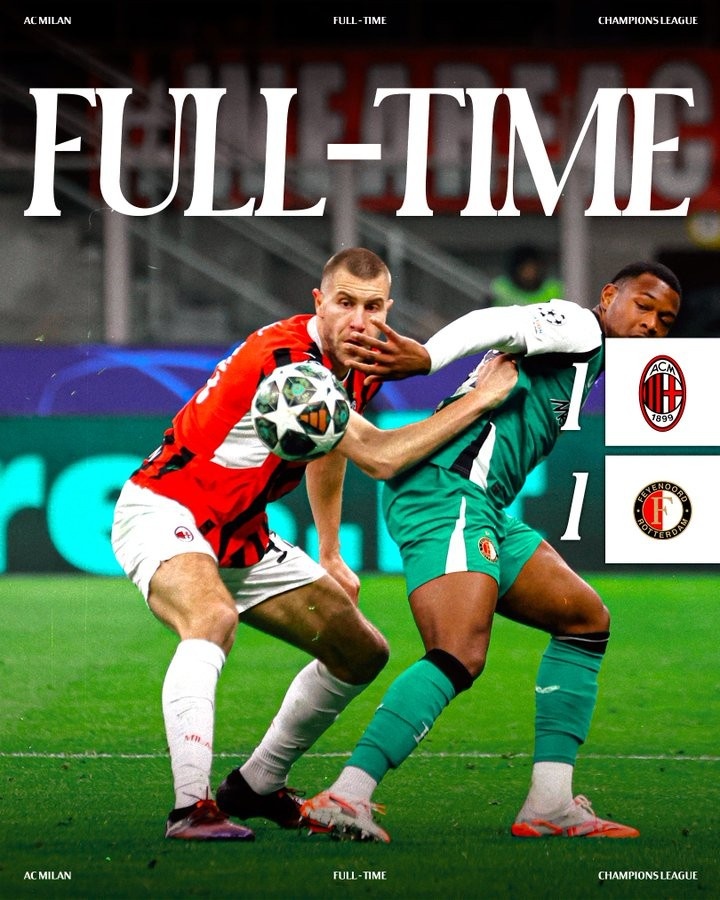 2月19日訊 米蘭在本輪歐冠次回合1-1戰(zhàn)平費(fèi)耶諾德,總比分1-2被淘汰。