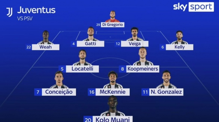意大利天空體育預(yù)測(cè)了尤文本場(chǎng)比賽的首發(fā)陣容,穆阿尼、孔塞桑、庫(kù)普梅納斯、維加、凱利在列。