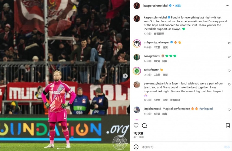 小舒梅切爾也在賽后通過社媒曬出自己的比賽照,并感嘆道:“昨晚已經(jīng)拼盡全力,但最終未能如愿。足球有時就是如此殘酷,但我仍為小伙子們深感驕傲,也為身披這件戰(zhàn)袍倍感榮耀。感謝球迷們一如既往難以置信的支持。????”