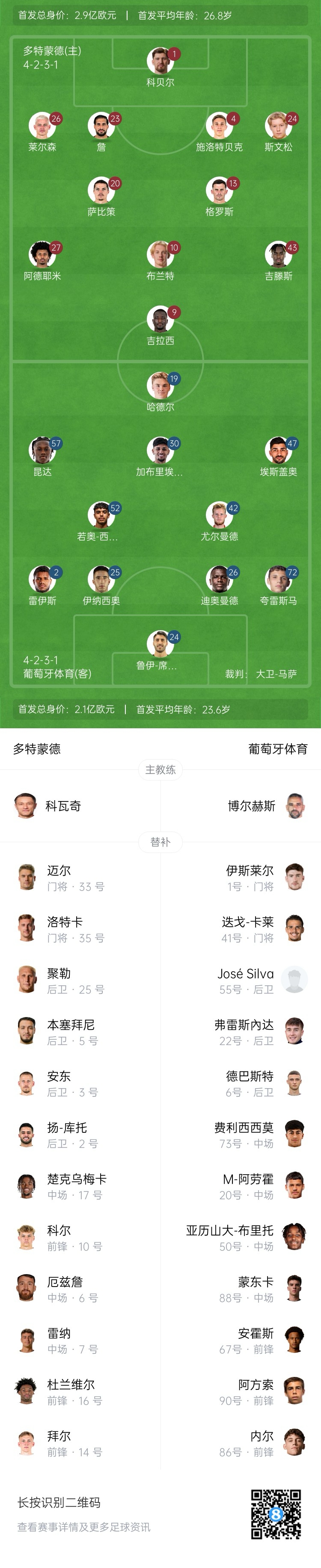 2月20日訊 歐冠淘汰賽附加賽次回合,多特對陣葡萄牙體育,賽前首發(fā)公布。
