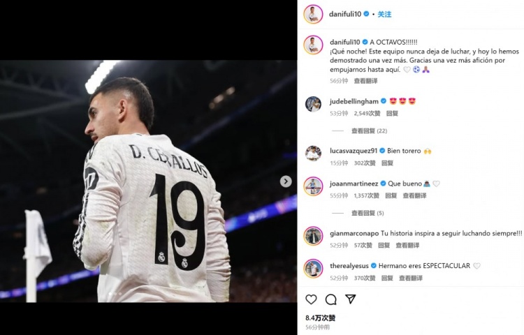 2月20日訊 皇馬在本輪歐冠主場(chǎng)3-1擊敗曼城,成功晉級(jí)16強(qiáng)戰(zhàn),中場(chǎng)塞巴略斯也在賽后發(fā)文紀(jì)念。