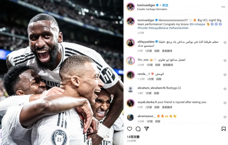他也在賽后通過社媒曬出自己和隊友們相擁慶祝的合照,并配文:“太棒了?。?!重要的歐冠勝利,出色的團隊表現(xiàn)!”