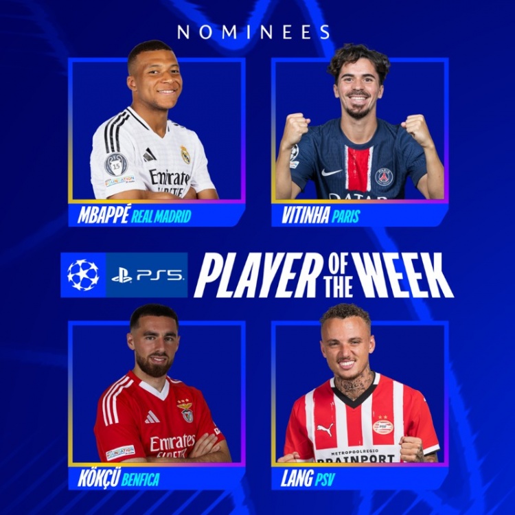 2月20日訊 歐冠淘汰賽階段附加賽次回合比賽已經全部結束,歐冠官方公布了本周最佳球員的候選名單,其中,對曼城戴帽的姆巴佩領銜,維蒂尼亞入選。