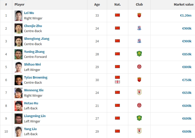 目前中國籍球員當中身價最高的是120萬歐元的武磊,但比起身價150萬歐元的伍小海,仍少了30萬歐元。