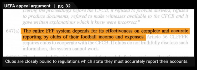 最初,CFCB聽證會(huì)發(fā)現(xiàn),曼城違反了其規(guī)定第56條,未能提供所要求的信息,并一度提出球隊(duì)所有權(quán)“存在作假”的指控。