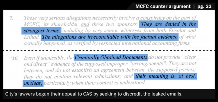 曼城的律師們向CAS提出上訴,他們認(rèn)為這些郵件被誤讀了。