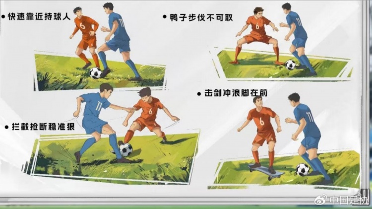 為了讓隊員們更直觀理解每堂課的內容,宗磊特意將每項培訓內容的要點提煉出“七字箴言”,比如針對一對一防守,他提煉的要訣為,“快速靠近持球人,攔截搶斷穩(wěn)準狠;鴨子步伐不可取,擊劍沖浪腳在前”。不僅如此,他還請人配上了漫畫,讓人看了,一目了然。