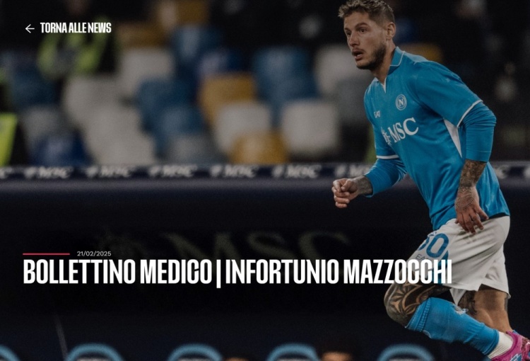 2月21日訊 那不勒斯官方確認(rèn),隊(duì)內(nèi)右后衛(wèi)馬佐基訓(xùn)練中肌肉受傷。