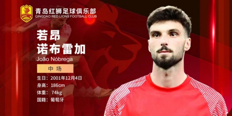 2月21日訊 中甲青島紅獅俱樂部官方宣布,葡萄牙外援若昂-諾布雷加正式加盟球隊。