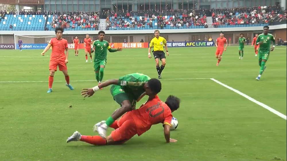 裁判沒有表示!蒯紀聞禁區(qū)內(nèi)被沙特球員“摁倒”,裁判示意沒犯規(guī)