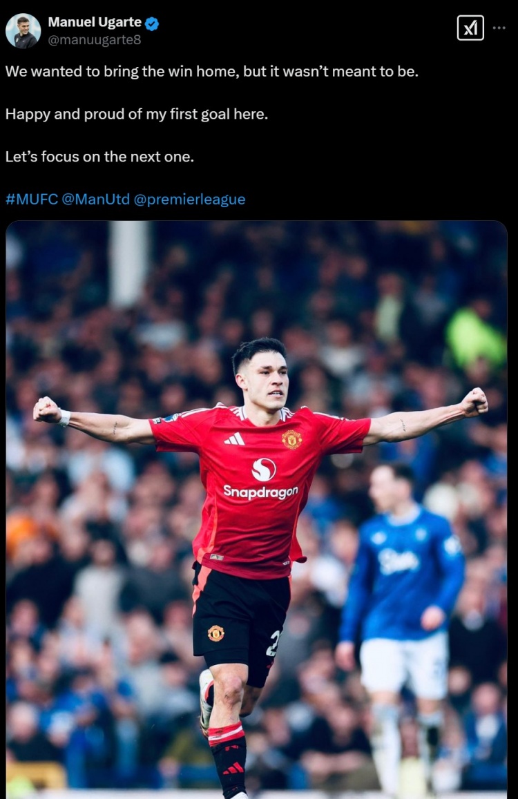 2月23日訊 本輪英超比賽中,曼聯(lián)2-2戰(zhàn)平埃弗頓,烏加特打進(jìn)自己的紅魔生涯首球。賽后,他更新動態(tài),表示很遺憾沒能獲勝。