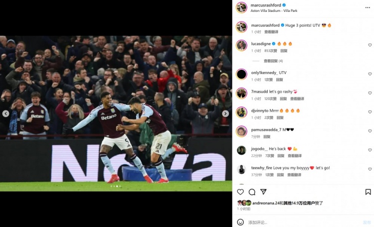 2月23日訊 在本輪英超,維拉2-1擊敗切爾西。本場(chǎng)比賽拉什福德送出兩次助攻,賽后他也在社媒曬出與阿森西奧慶祝合影,配文寫(xiě)道:“拿下重要的三分!” 標(biāo)簽: 足球 英超 阿斯頓維拉
