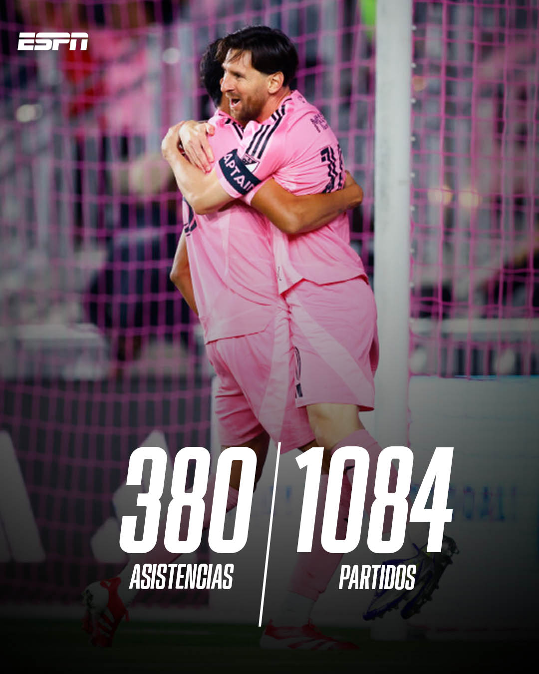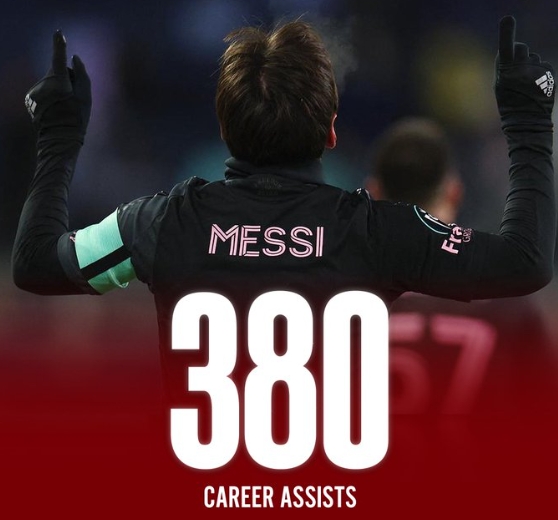 開場5分鐘梅西送助攻,阿維萊斯破門。據(jù)統(tǒng)計,這是梅西生涯第380個助攻(1084場),除梅西以外現(xiàn)役中沒有其他球員助攻數(shù)超過300。