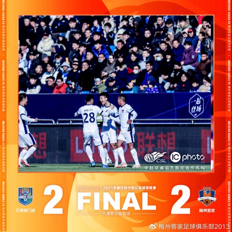 北京時間2月23日15:30,2025華潤飲料中國足球超級聯(lián)賽第1輪比賽,梅州客家做客天津泰達(dá)體育場對陣天津津門虎。