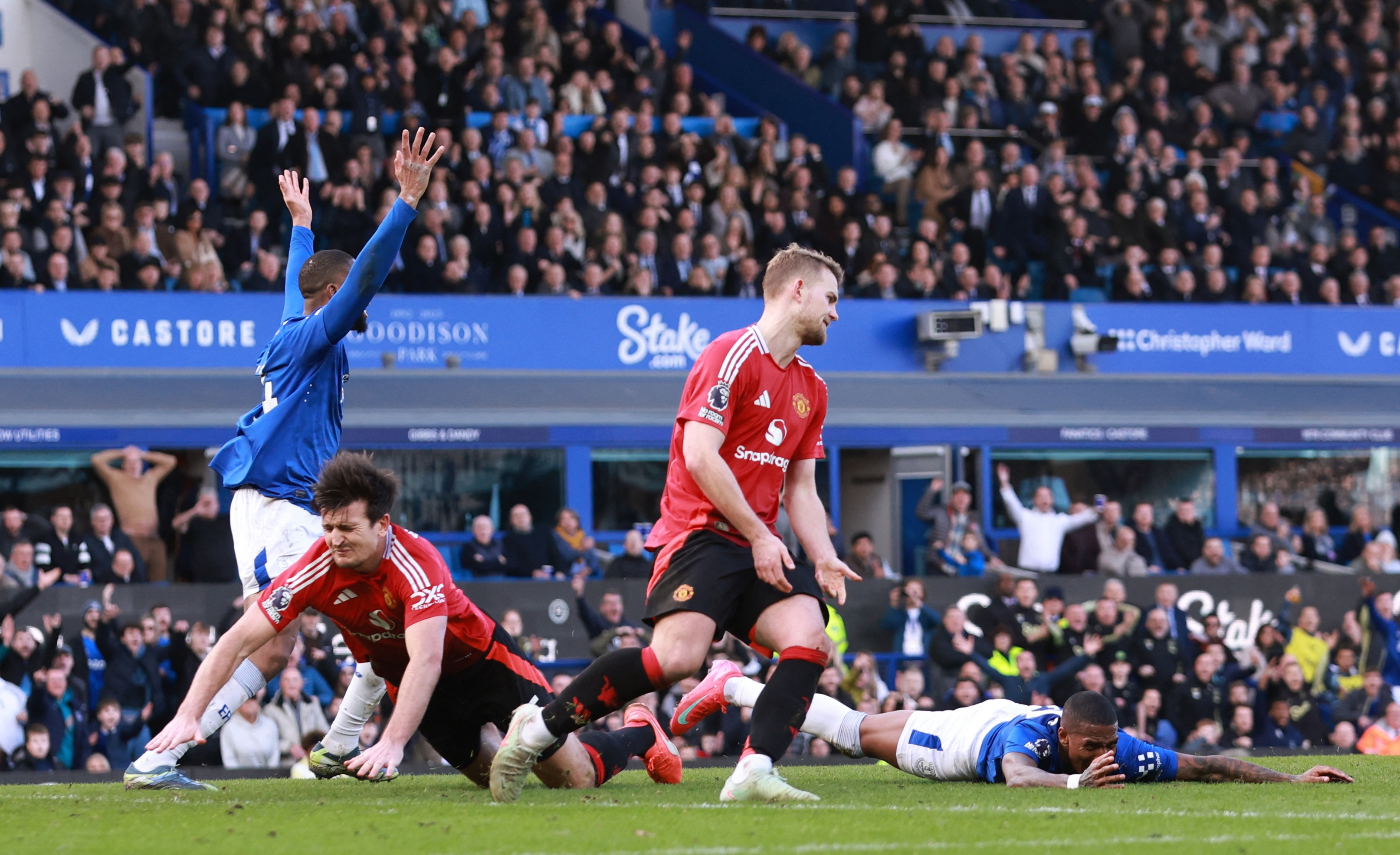首次危機(jī)出現(xiàn)在第5分鐘:達(dá)洛特滑稽解圍失誤,皮球隨即擊中卡塞米羅面部反彈。不久后,馬茲拉維接受治療后返場,與馬奎爾爭頂同一高空球時遭隊友疑惑注視。埃弗頓借機(jī)組織進(jìn)攻,貝托頭球考驗奧納納。這并非曼聯(lián)球員最后一次高空球自亂陣腳。