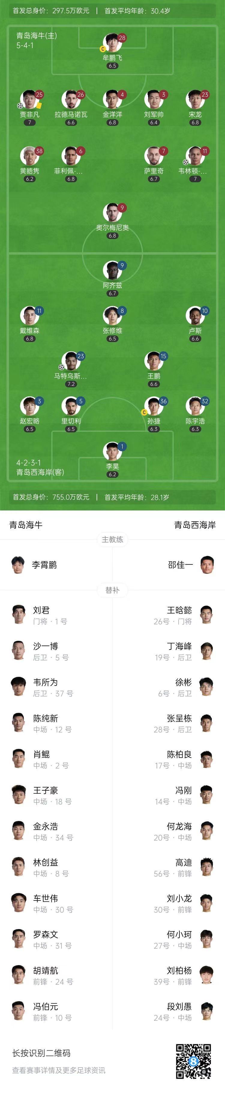 第15分鐘,青島西海岸傳中,劉軍帥解圍頂在馬特烏斯身上,后者順勢抽射,門將在門線內(nèi)將球擋出,皮球疑似打在馬特烏斯手臂上,但馬寧經(jīng)過VAR回放確認進球有效!青島西海岸扳平比分,1-1!↓