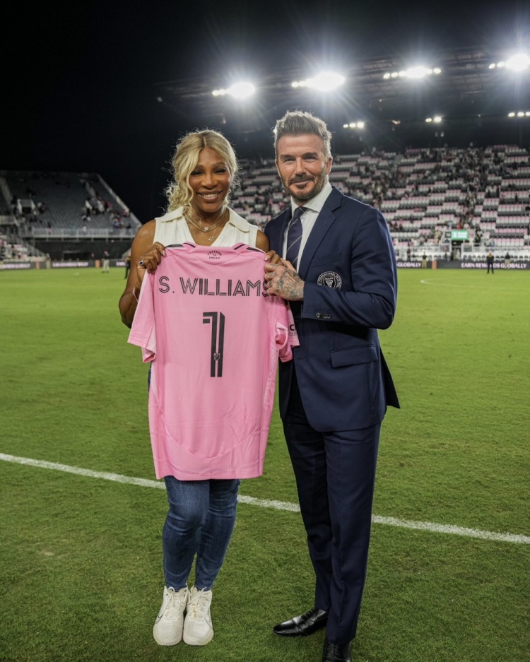 據(jù)邁阿密國(guó)際官推顯示,網(wǎng)壇名將塞蕾娜-威廉姆斯(小威)來(lái)到現(xiàn)場(chǎng)觀看比賽,并獲得了球隊(duì)老板貝克漢姆的接見,后者向小威贈(zèng)送了一件印有她名字的球衣。