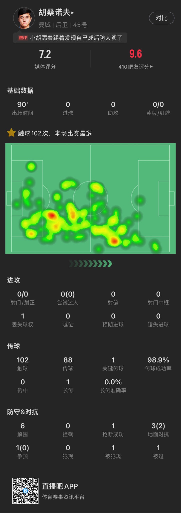 2月24日訊 英超聯(lián)賽第26輪,曼城主場0-2不敵利物浦,本場比賽曼城后衛(wèi)胡桑諾夫首發(fā)登場,以下是他本場比賽的數(shù)據(jù)。