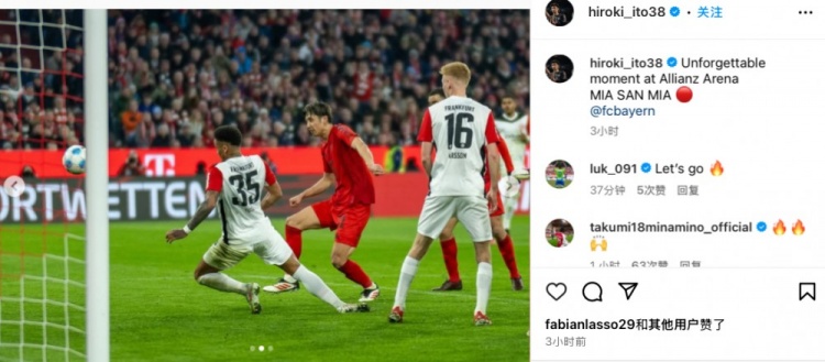 賽后伊藤洋輝在社媒曬出自己射門時的瞬間,以及一些比賽照,紀(jì)念自己打入拜仁首球。他寫道:“在安聯(lián)球場,這真是一個難忘的瞬間。MIA SAN MIA。”