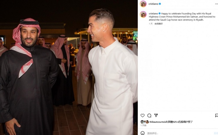 2月24日訊 C羅此前更新了社交媒體,曬出與沙特王儲薩勒曼的合照,在2月22日C羅出席了沙特的相關活動。