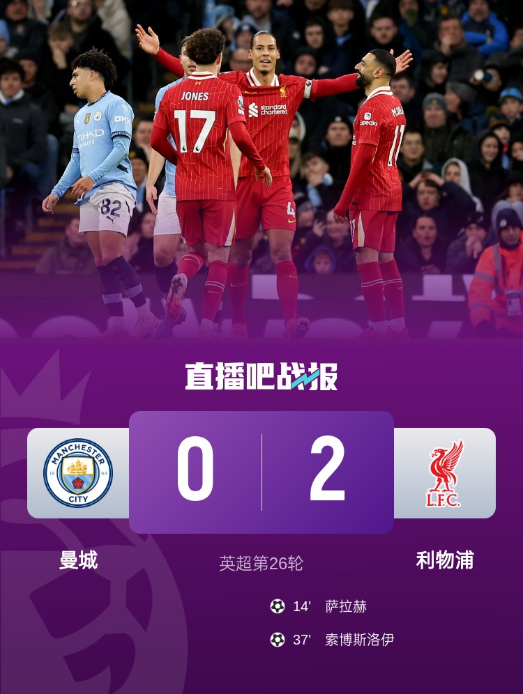英超第26輪,利物浦2-0雙殺曼城。上半場,劉易斯失誤送角球致丟球,薩拉赫和索博斯洛伊互獻(xiàn)傳射,馬爾穆什進(jìn)球越位;下半場,瓊斯進(jìn)球越位在先。