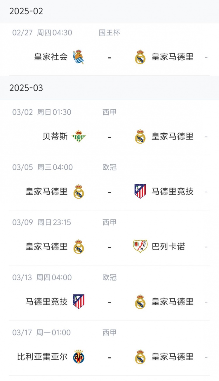 皇馬則同樣面臨緊張的賽程,六場比賽僅兩場在伯納烏進(jìn)行,需要客場挑戰(zhàn)皇家社會、貝蒂斯和比利亞雷亞爾,同時(shí)還要應(yīng)對歐冠對陣馬競的比賽。