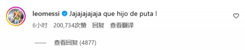 梅西在評論區(qū)評論道:“哈哈哈哈,你這狗娘養(yǎng)的?!?/p>