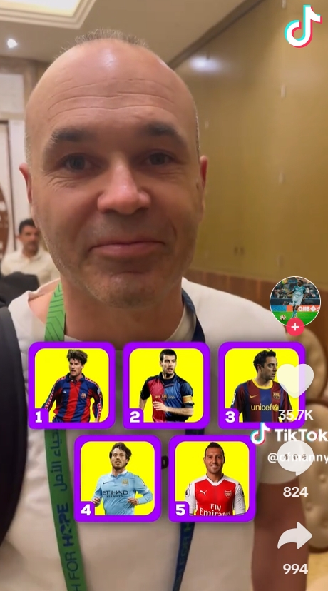 伊涅斯塔挑選歷史最佳五人陣:勞德魯普、瓜迪奧拉、哈維、大衛(wèi)-席爾瓦、卡索拉