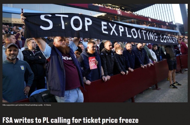 僅在最近幾周,我們就看到一些曼城球迷團體聯(lián)名致信他們的俱樂部,呼吁凍結(jié)門票價格,而阿森納、阿斯頓維拉、富勒姆、曼聯(lián)、紐卡斯?fàn)?、熱刺和西漢姆也有類似的活動。