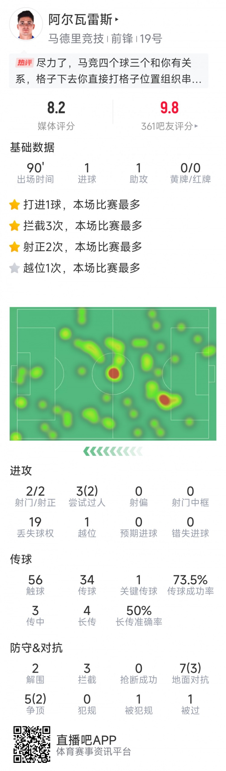 2月26日訊 在本輪國王杯,馬競4-4戰(zhàn)平巴薩。本場比賽阿爾瓦雷斯傳射建功,以下為他在本場數(shù)據(jù):