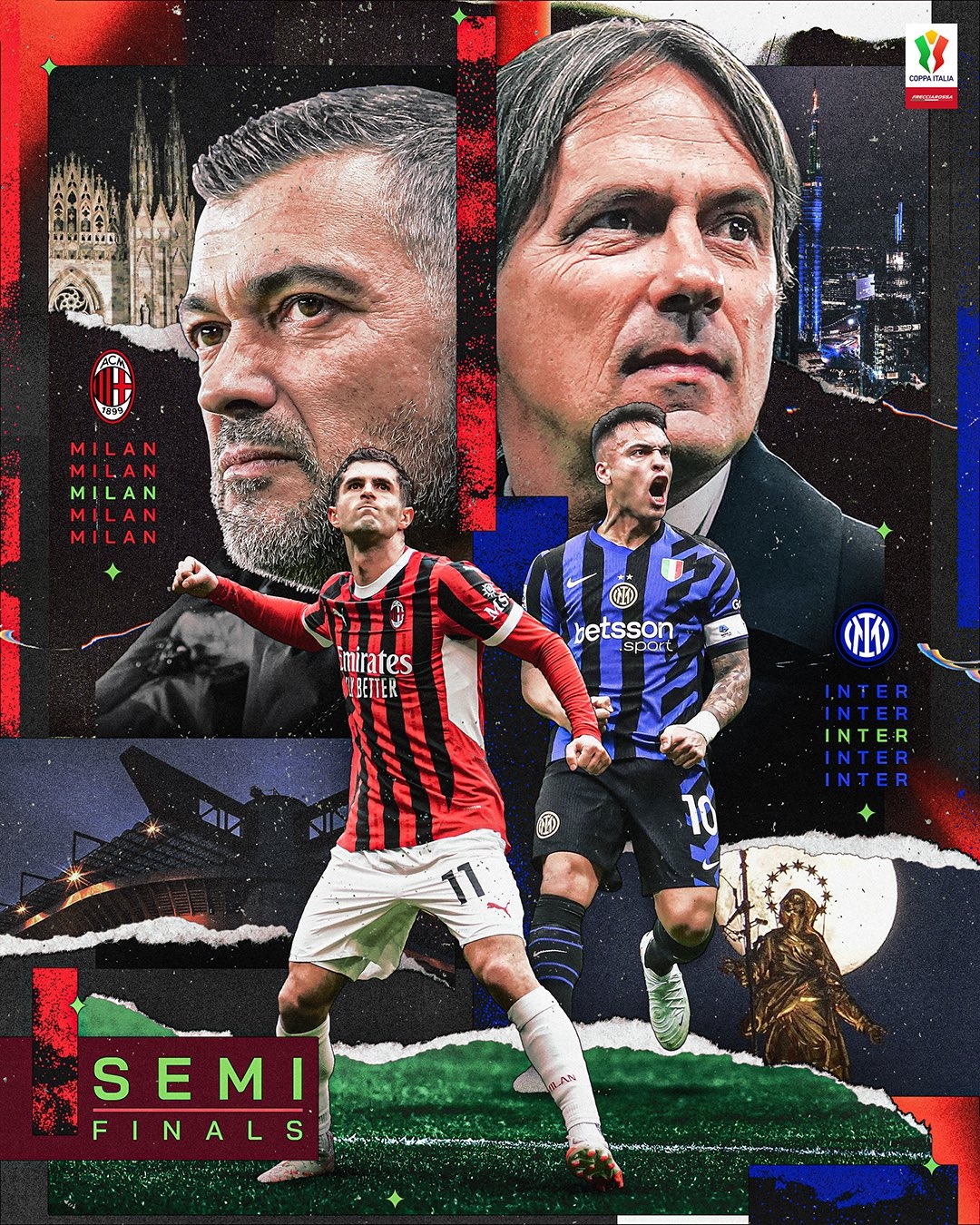 意大利杯半決賽將是兩回合制,國米和米蘭本賽季將有5次對決。本賽季前3場對陣中,國米聯(lián)賽主場1-2、客場1-1米蘭,超級杯決賽2-3不敵米蘭。