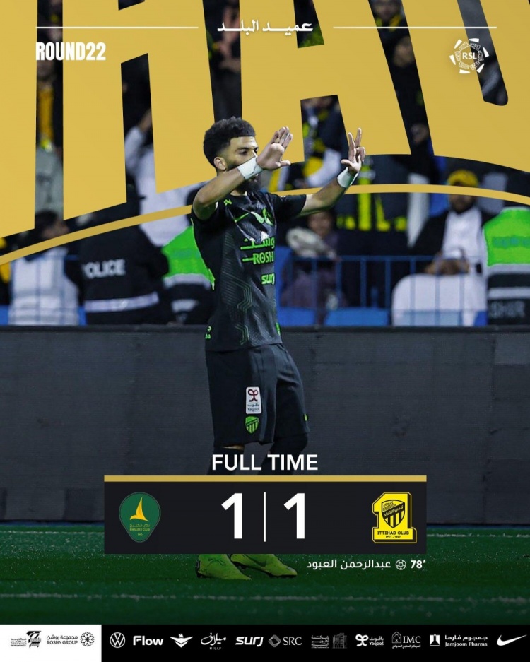 吉達(dá)聯(lián)合客場1-1戰(zhàn)平卡利杰,聯(lián)賽4連勝終結(jié)。