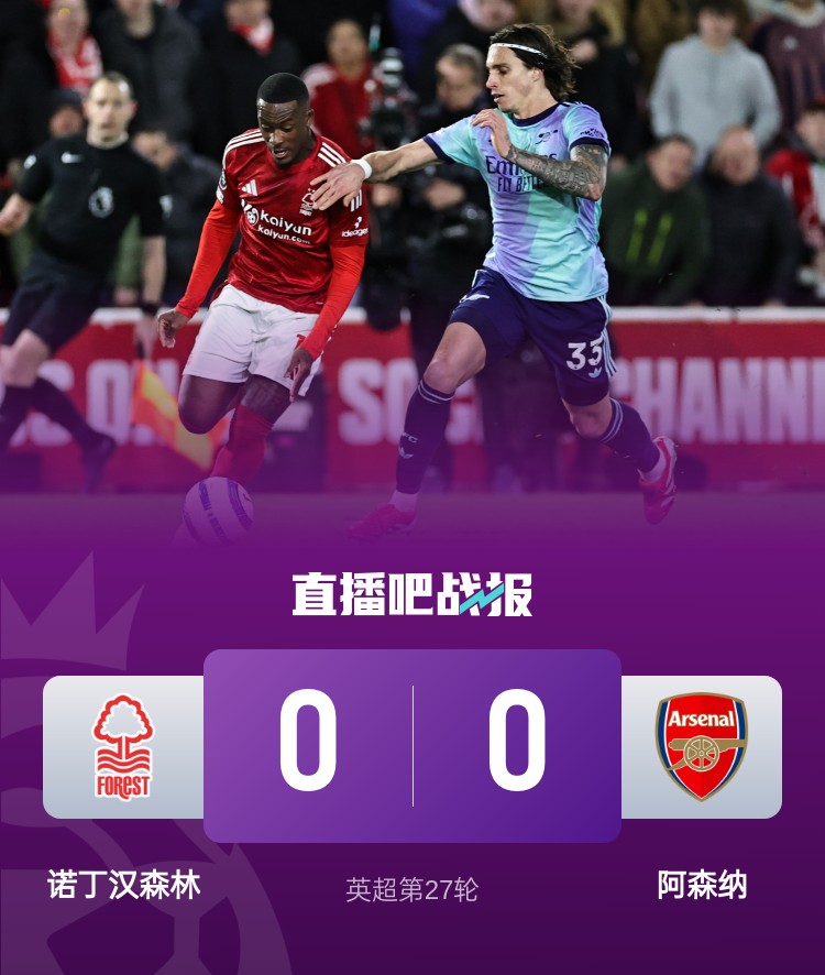 拉亞獻(xiàn)神撲,最終阿森納0-0諾丁漢森林,兩輪不勝后距榜首13分。