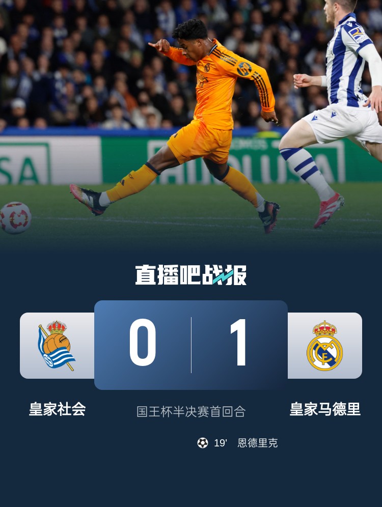 恩德里克制勝,皇馬1-0皇家社會占得先機(jī)。
