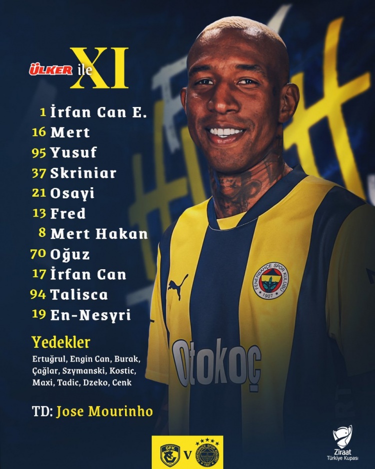 費(fèi)內(nèi)巴切首發(fā):1-伊凡-詹-奧里巴亞特、16-穆?tīng)柖拧?5-阿克西切克、37-什克里尼亞爾、21-奧薩伊、13-弗雷德、8-哈坎、70-奧古茲、17-伊凡-詹-卡維奇、94-塔利斯卡、19-恩內(nèi)斯里
