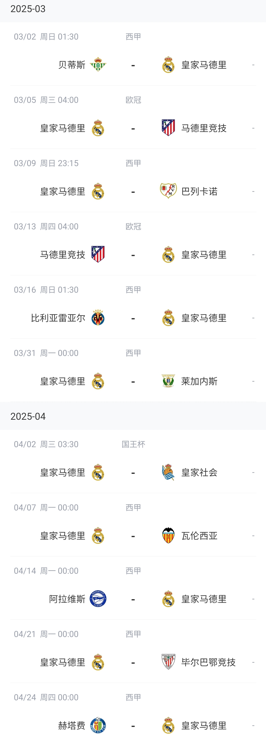 皇馬未來賽程