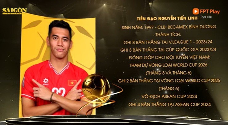 當(dāng)?shù)貢r(shí)間26日晚間在胡志明市舉辦的越南足球2024年頒獎(jiǎng)典禮上,阮進(jìn)靈首次贏得了越南足球男子金球獎(jiǎng)。
