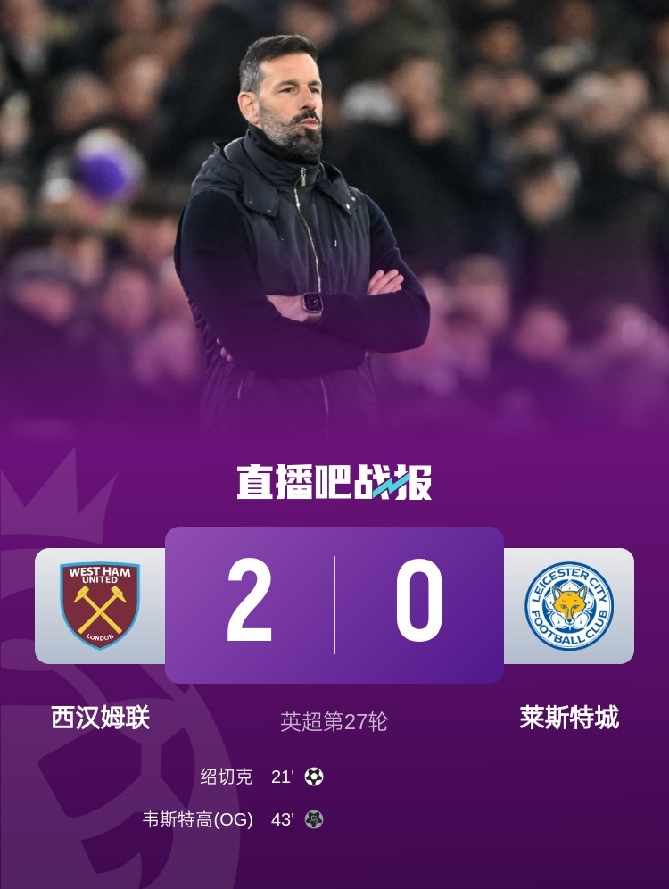 02月28日訊 英超第27輪,萊斯特城客場(chǎng)0-2不敵西漢姆,遭遇各賽事5連敗。