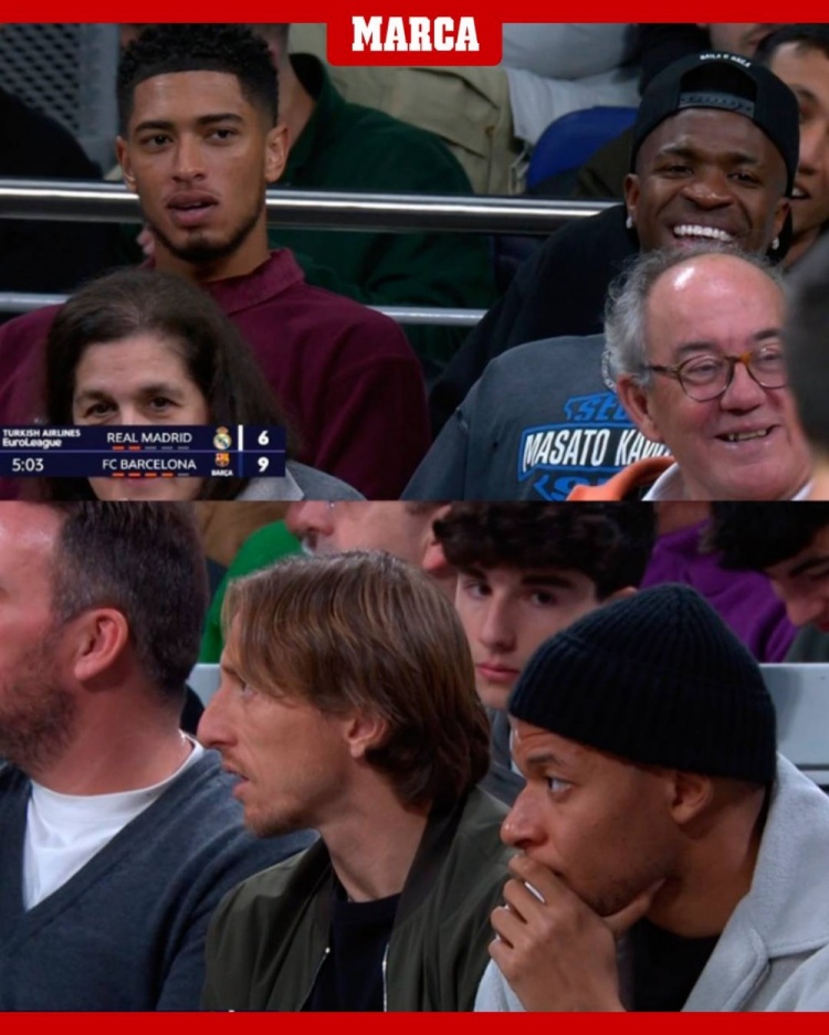 2月28日訊 歐冠男籃迎來皇馬和巴薩的國家德比戰(zhàn),在昨天凌晨結(jié)束國王杯半決賽首回合比賽后,多位皇馬球員在現(xiàn)場觀看這場籃球比賽。