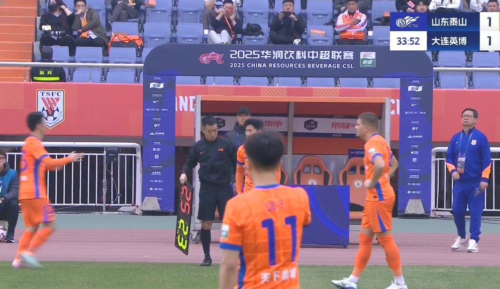 多打一人加強(qiáng)進(jìn)攻!泰山第34分鐘換人,謝文能換下彭欣力