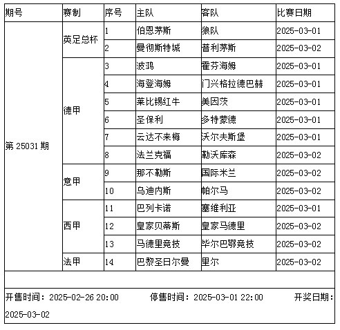 本周末,英超因?yàn)樽憧偙鴷和?。下周中又將有歐戰(zhàn)各級(jí)賽事淘汰賽,強(qiáng)隊(duì)紛紛面臨雙線作戰(zhàn)。傳足勝負(fù)彩第25031期涉及的球隊(duì)中,多特蒙德、勒沃庫(kù)森、皇家馬德里、巴塞羅那、巴黎圣日爾曼和里爾都要征戰(zhàn)歐冠淘汰賽;法蘭克福、畢爾巴鄂競(jìng)技征戰(zhàn)歐聯(lián)淘汰賽;皇家貝蒂斯將出戰(zhàn)歐協(xié)淘汰賽。