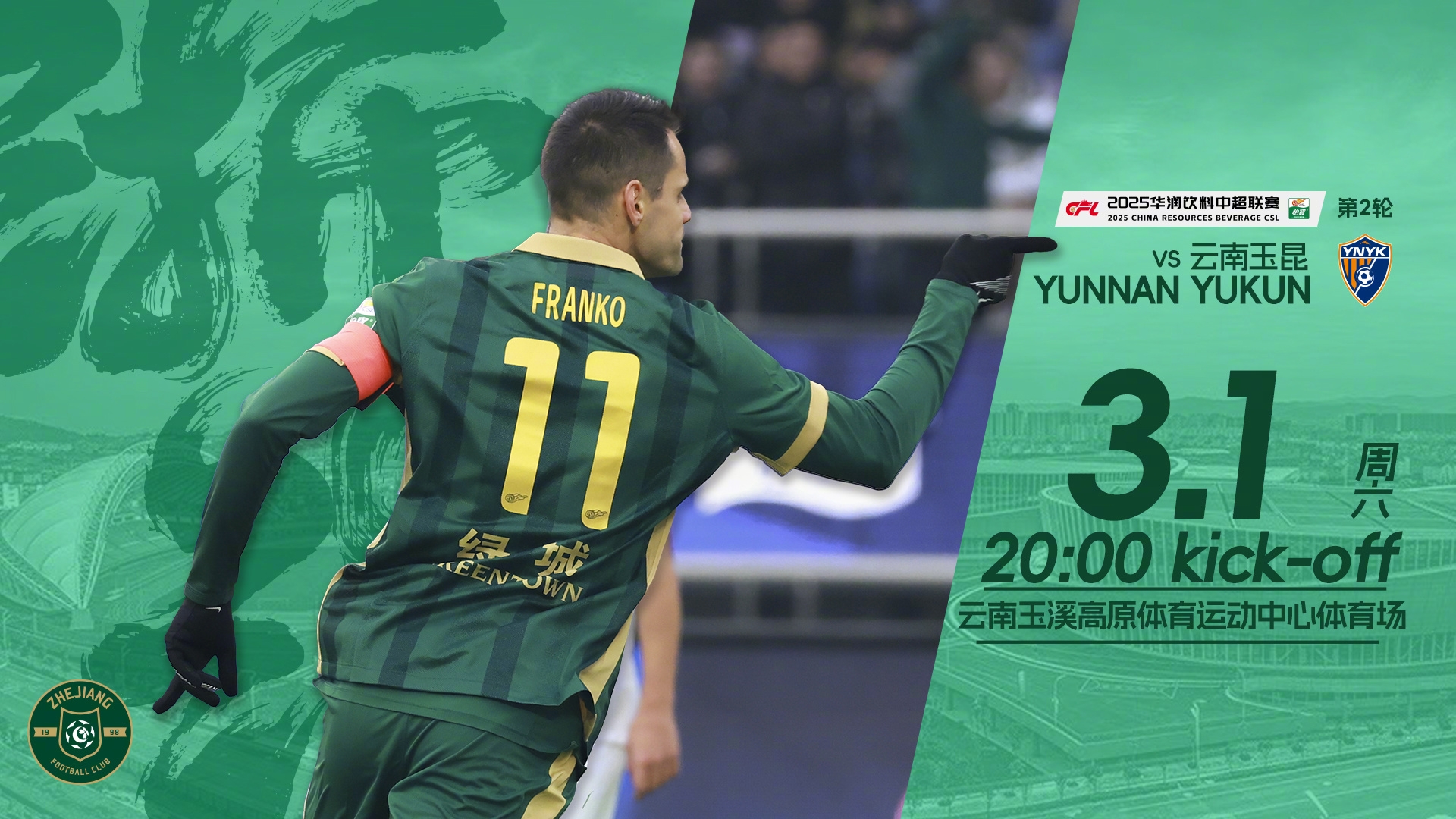 本場(chǎng)比賽將在云南玉昆西高原體育場(chǎng)進(jìn)行。此前首輪中超云南玉昆0-2不敵北京國安,浙江則是1-1戰(zhàn)平大連英博。