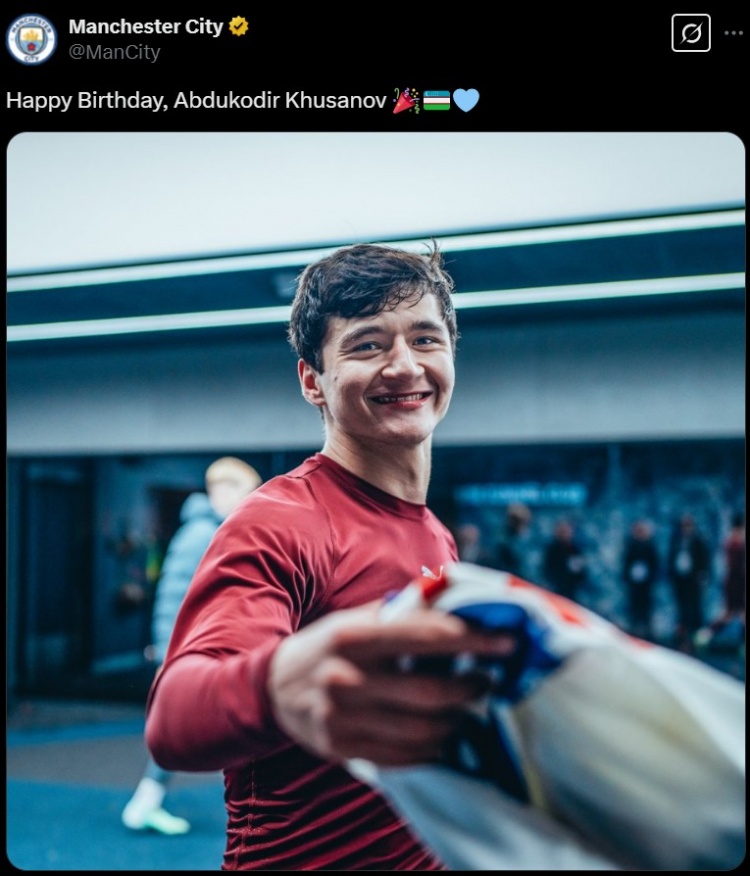 3月1日訊 曼城官推曬照為胡桑諾夫送上21歲生日祝福。
