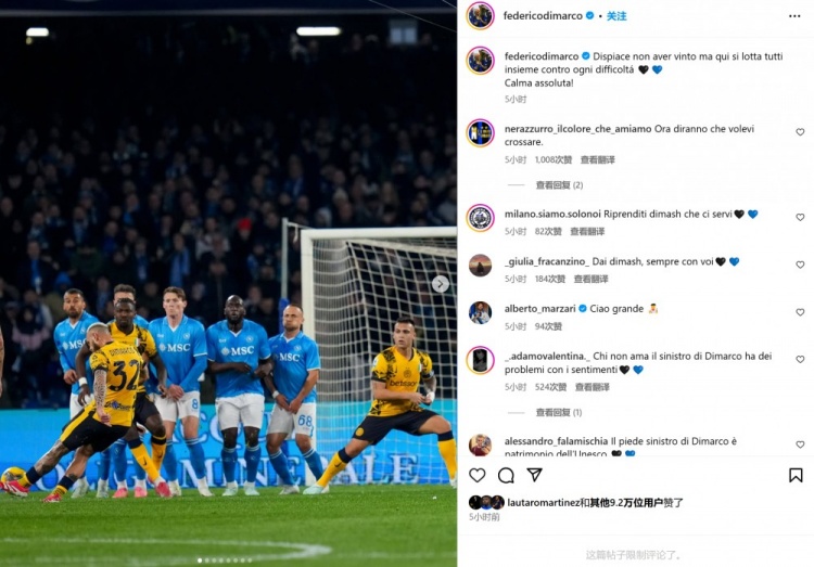 本場(chǎng)比賽迪馬爾科上半場(chǎng)打進(jìn)精彩任意球,賽后他也在個(gè)人社媒曬出破門瞬間照片,配文寫(xiě)道:“很遺憾未能取得勝利,但是面對(duì)勁敵我們?nèi)?duì)都在團(tuán)結(jié)拼搏?!?/p>
