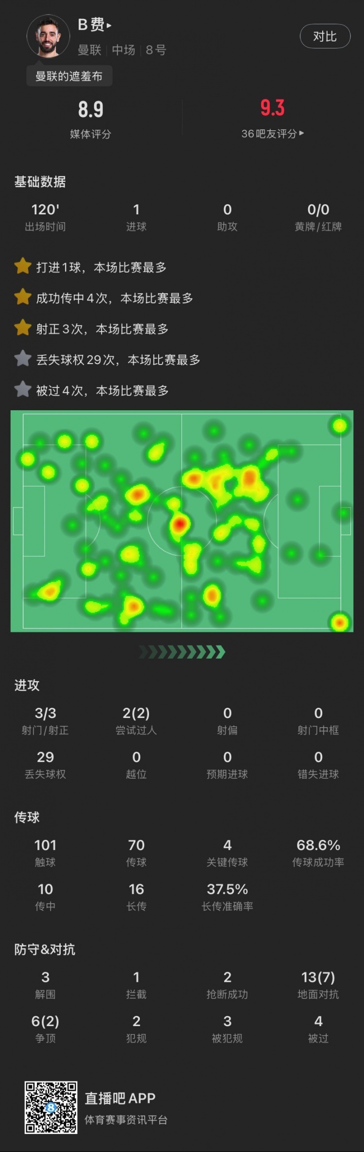 3月3日訊 足總杯1/8決賽,曼聯(lián)點球大戰(zhàn)不敵富勒姆。本場比賽,B費打滿120分鐘,幫助曼聯(lián)扳平比分,并在點球大戰(zhàn)中主罰命中。