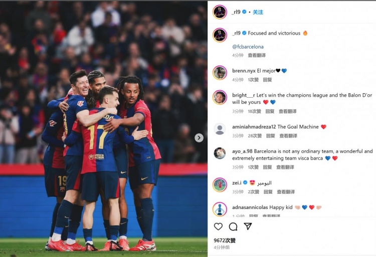 萊萬(wàn)本賽季37場(chǎng)已經(jīng)打進(jìn)33球,他也在賽后通過(guò)社媒曬出自己和隊(duì)友們相擁慶祝的合照,并配文:“保持專注,贏得勝利@巴薩俱樂(lè)部”。