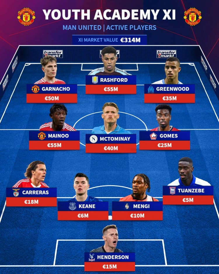 曼聯(lián)青訓(xùn)出品球員最佳陣↓(括號(hào)內(nèi)為球員目前效力球隊(duì))
