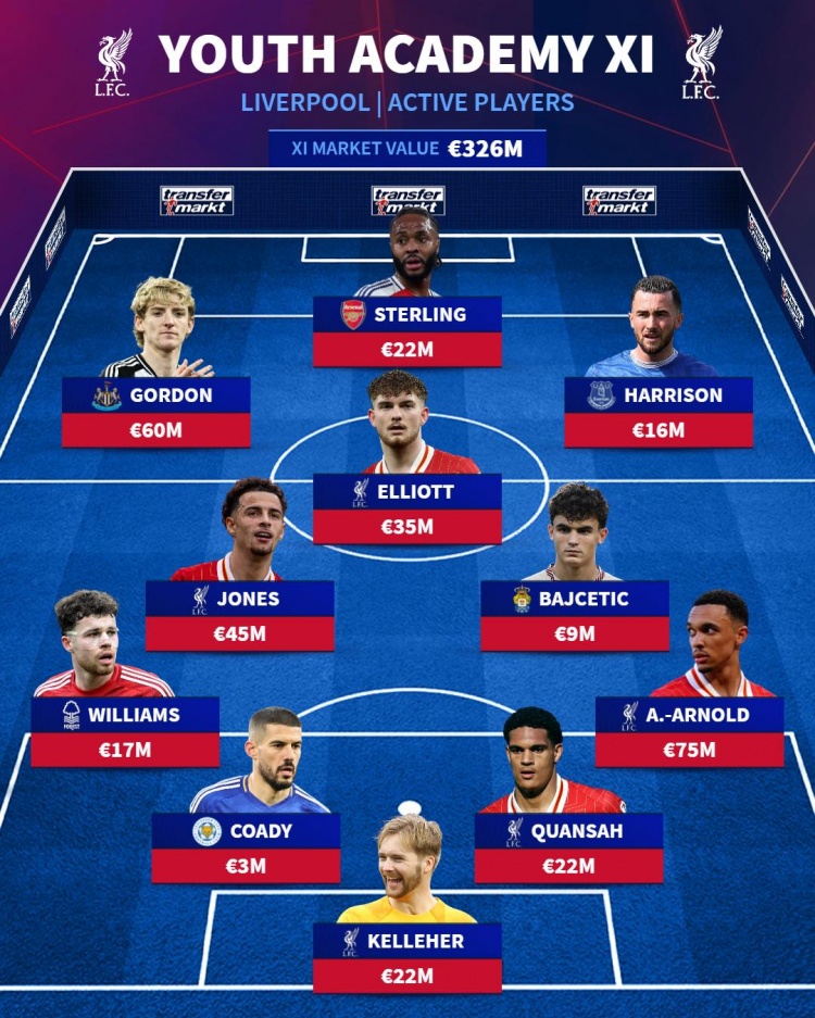 利物浦青訓(xùn)出品球員最佳陣↓(括號(hào)內(nèi)為球員目前效力球隊(duì))
