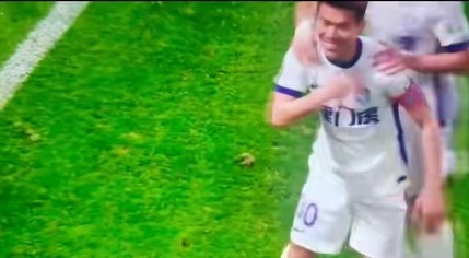 此役第12分鐘,津門虎后場(chǎng)長(zhǎng)傳,哈達(dá)斯禁區(qū)內(nèi)凌空端向中路,王秋明包抄打門得手,津門虎1-0領(lǐng)先蓉城。打入進(jìn)球后的王秋明,疑似在慶祝時(shí)做出了“割喉”的動(dòng)作。