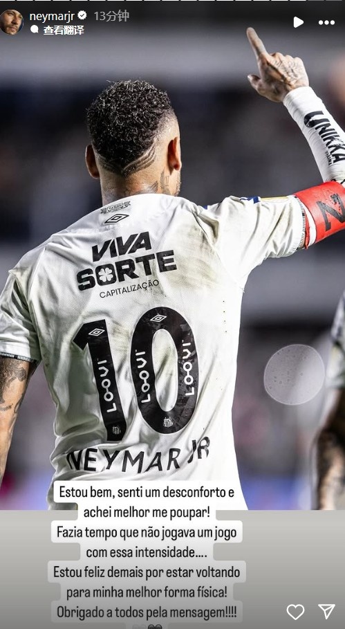 3月3日訊 巴圣錦標(biāo)1/4決賽,內(nèi)馬爾破門(mén),桑托斯2-0巴甘蒂諾紅牛。內(nèi)馬爾第76分鐘被換下,賽后他在場(chǎng)邊接受了治療。 目前,內(nèi)馬爾更新社媒,談到了自己的情況。